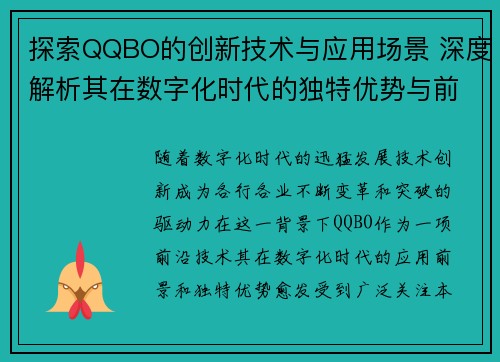 探索QQBO的创新技术与应用场景 深度解析其在数字化时代的独特优势与前景
