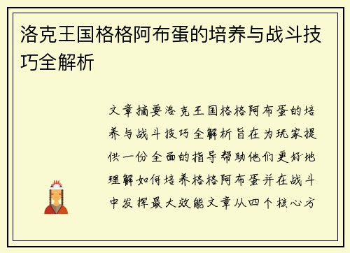 洛克王国格格阿布蛋的培养与战斗技巧全解析